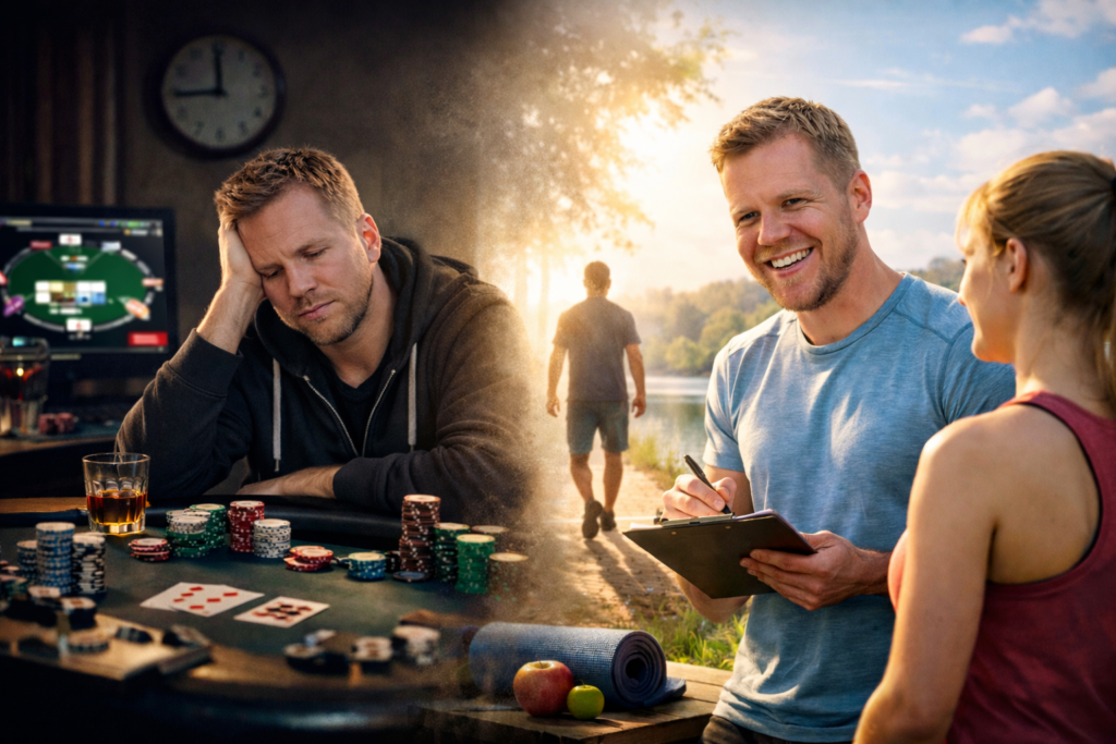 Na veertien jaar als professioneel pokerspeler merkte ik dat ik behoefte kreeg aan meer afwisseling en zingeving. Het leven met onregelmatige werktijden, hoge stress en veel late nachten maakte het steeds lastiger om de gezonde leefstijl te behouden die voor mij juist belangrijker was geworden.